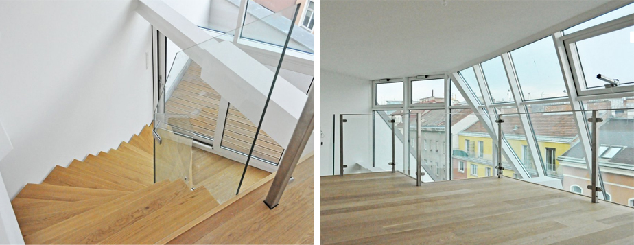 Flachdach gehen, wo Sie einen 360-Grad-Rundumblick über Wien erwartet. Diese Terrasse eignet sich auch zur Montage von