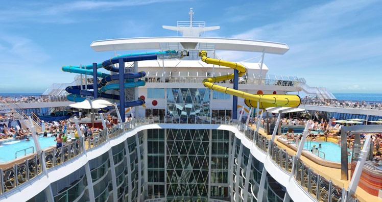 Der Luxusliner, der eine Geschwindigkeit von 23 Knoten erreicht, bietet auf einer Länge von 362 Meter und einer Breite von 66 Meter Platz für 6.680 Passagiere und 2.200 Besatzungsmitglieder. Durch die schwimmende Stadt führt, wie bei den anderen Schiffen dieser Klasse, eine Royal Promenade und es gibt einen Central Park sowie Kabinen in vier verschiedenen Kategorien. Dazu wird den Passagieren in Luxus-Einrichtungen auf 15 Decks mit Restaurants, einer Eislaufbahn, einem Musicaltheater, zwei Surfsimulatoren, einer Zip-Line, einem Fitnessstudio, auf 13 Meter hohen Kletterwänden und mit vielen anderen Sporteinrichtungen sowie einer 30 Meter langen Riesenrutsche, die über zehn Decks hinabführt, jede Menge Abwechslung geboten. Nicht zu vergessen, zwei Pools, Sonnenliegen, ein Vitality Spa mit Thermal Suite und einem Yoga-Programm und dazu noch zahlreiche Shops und Galerien.