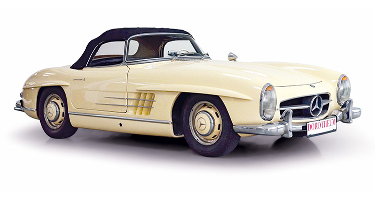 Star der Auktion ist ein elfenbeinfarbener, zeitlos eleganter „Mercedes-Benz 300 SL Roadster“, Baujahr 1960. Vor 58 Jahren glänzte er als Ausstellungswagen auf der „London Motor Show“, danach befand sich diese, in sensationell unrestauriertem Zustand befindliche Autolegende im Besitz eines Österreichers. 850.000 bis eine Million Euro sollte das 215 PS starke Gefährt seinem neuen Besitzer auf jeden Fall wert sein.