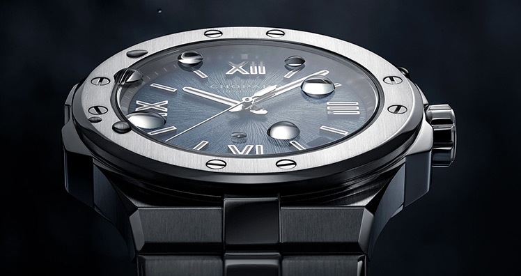 Das rau wie eine Felsoberfläche gestaltete Zifferblatt soll an die Iris des Adlers erinnern, während die Zeiger an die Federn des Raubvogels und die eisigen Reflexe der Gletscher denken lassen. Das bis in 100 Meter Tiefe wasserdichte Gehäuse erhält durch den Kronenschutz, der auf der gegenüberliegenden Seite gespiegelt ist, seine charakteristische Form, die Krone selbst ziert eine gravierte Windrose.