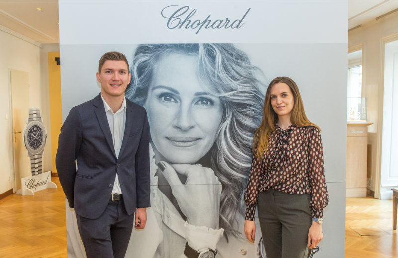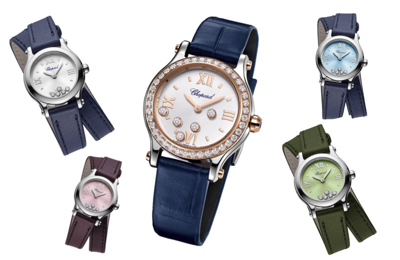 "Bei den Damenuhren gibt erstmals in 30 Jahren bei der Happy Sport Kollektion 25-Millimeter-Modelle, die auch von Julia Roberts während ihres Gastauftritts in Genf getragen wurde," berichtet Florian Freudenthaler. "Die Uhren sind aus Lucent Steel und ethischem Gold gefertigt, verfügen über Quarzwerke und haben klassische oder bunte Zifferblätter, auf denen je fünf Diamanten tanzen." Drei weitere Modelle in 33 und 30-Millimeter, auch mit Diamantenlünetten, wurden ebenfalls von Chopard in Genf vorgestellt.