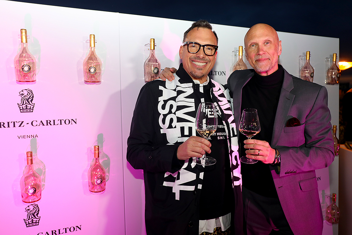 Jürgen Ammerstorfer, General Manager des Hotels, präsentierte neben der Zusammenarbeit mit dem Château Miraval auch die neu gestaltete luxuriöse Outdoor-Location mit einem mit Kristallen durchsetztem Quarzit-Stein "Centaurus" als besonderen Hingucker. François Perrin zeigte sich ebenfalls über die Zusammenarbeit sehr erfreut und ist stolz, nun ein wenig Provence in die historische Weltstadt Wien bringen zu können.