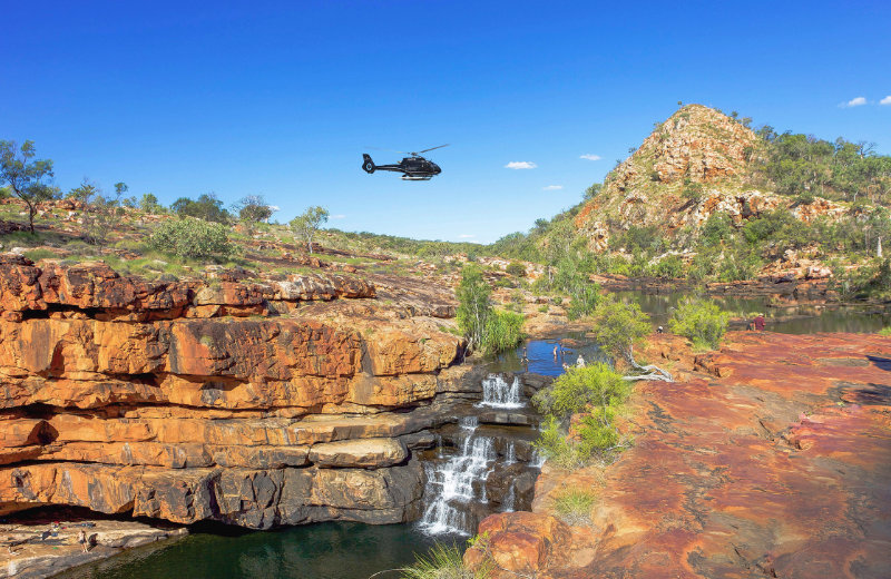 Zwischen Mai und August 2024 finden zwölf Abfahrten der elftägigen Reise "Discover the Kimberley Coastline: An Ancient Wilderness" zwischen Darwin und Broome statt. Zu den All-inclusive-Reisen können zehn aufregende Helikopter-Exkursionen hinzugebucht werden. Auch ein individueller Flug in einem oder mit beiden Hubschraubern ist möglich.