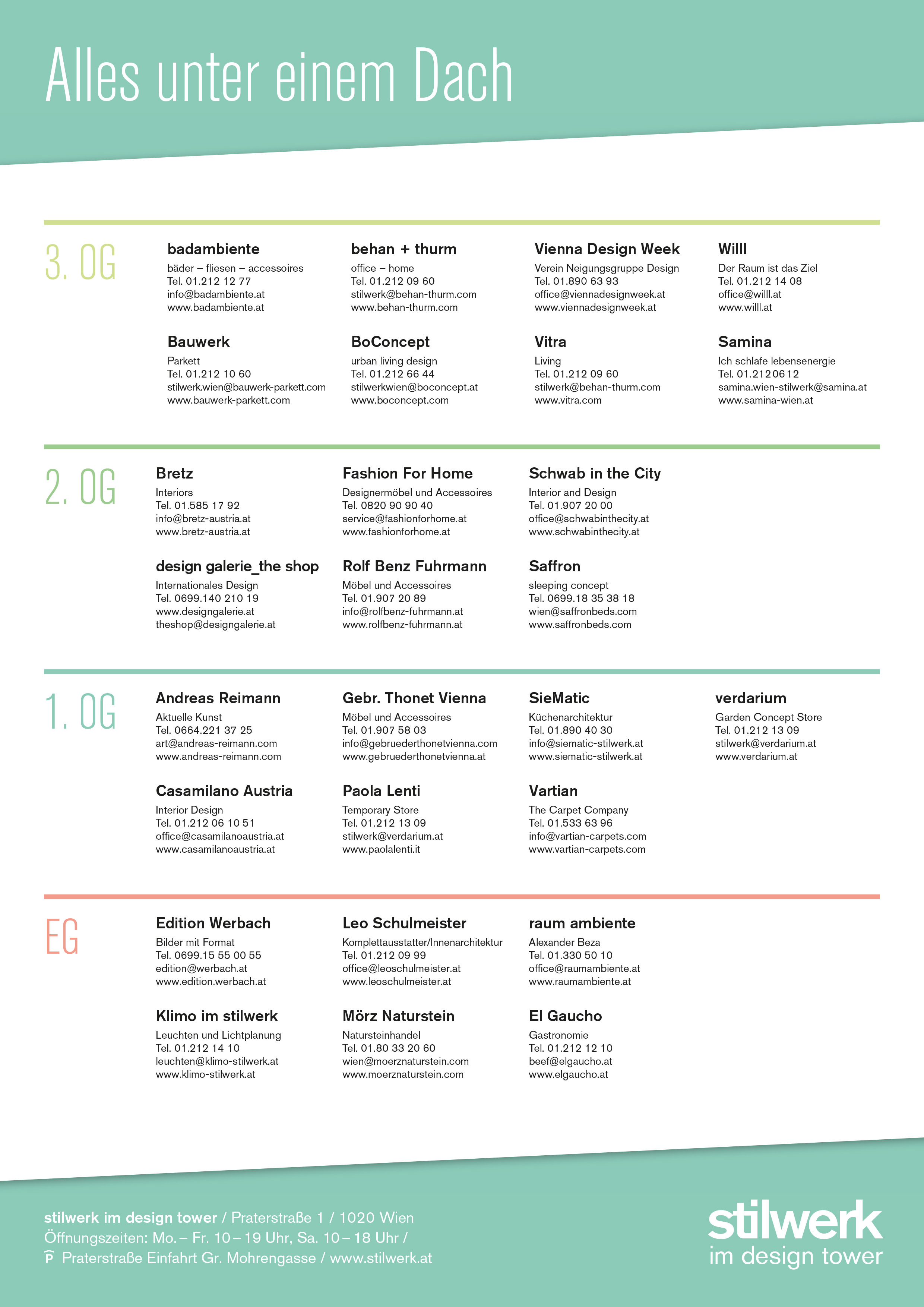 Das stilwerk Wien wurde als viertes Haus und erste Auslandsdependance im Dezember 2010 eröffnet. Auf einer Gesamtfläche von rund 6.000 Quadratmetern präsentieren sich in dem von Star-Architekt Jean Nouvel entworfenen Gebäude auf vier Etagen 28 erstklassige Einzelhändler, während in restlichen Teil des Towers das luxuriöse Sofitel Vienna Stephansdom residiert.