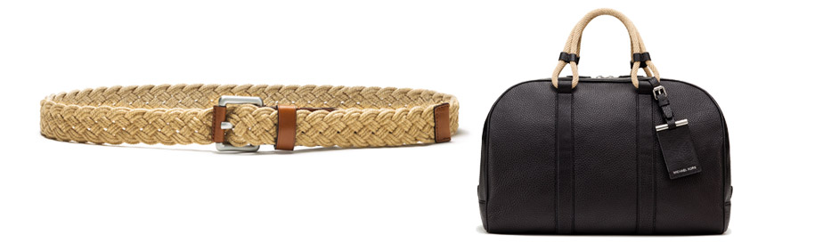 3, Michael Kors präsentiert in der Frühjahr/Sommer 2015 Kollektion Männeraccessoires mit geflochtenen Bastdetails. Weekender aus feinstem Kalbsleder, stylishe Sandalen und Sneakers werden durch lässige Bastelemente zu den neuen Trendpieces für jede Männergaderobe.