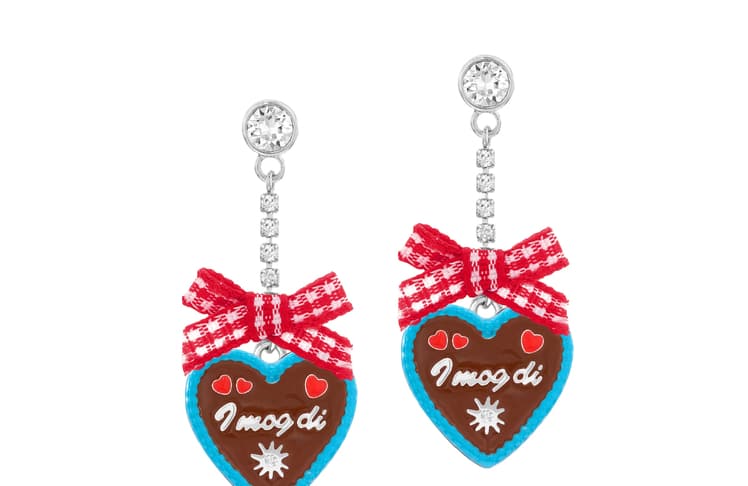5, Schmucke Sache: Lebkuchenherzen, Brezeln, Hirsche, Edelweiß und sogar der Bayerische Wappenlöwe - keines der klassischen Wiesn Motive fehlt in der Kollektion. Die Symbole baumeln rhodiniert, vergoldet und in Kristall an weiß-blauen Schleifen, prägen Satin-, Filz- und Lederbändchen und zieren eine Auswahl an Ohrsteckern.