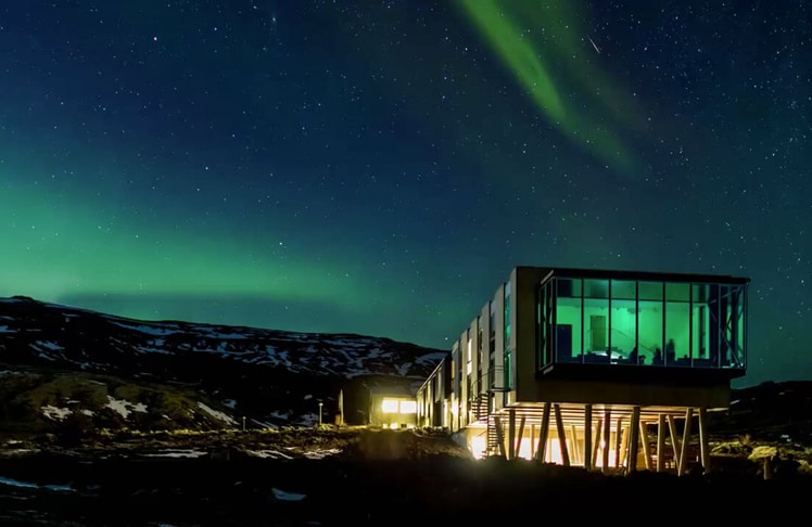 Absteigen kann man im Ion Luxury Adventure Hotel, das sich auf dem Berg Hengill, 18 km vom zum UNESCO-Weltkulturerbe gehörenden Nationalpark Thingvellir entfernt, befindet. Zum Haus gehört auch die Northern Light Bar. Vom innern des Glaskubus lässt sich das Tanzen der Nordlichter bestens beobachten.