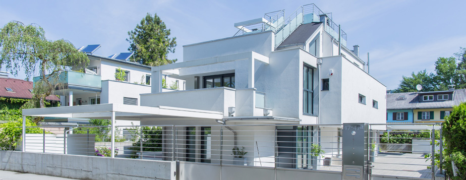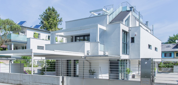 Dieses von Architekten geplante Zweifamilienhaus sticht mit seinen geradlinigen und modernen Akzenten aus der Menge hervor. Die hochwertigen und großzügigen Glasfassaden schaffen helle Wohnräume. Die offenen Wohnräume präsentieren einerseits einen wunderschönen Ausblick und schützen von außen betrachtet aber trotzdem die Privatsphäre.
