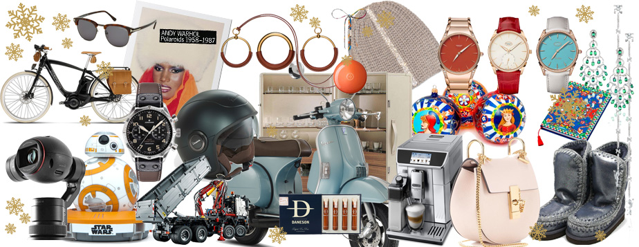 Mit der italienischen Kultmarke Vespa kommt auch unter dem Christbaum italienisches Lebensgefühl auf – die passenden Präsente (6) wie moderne Accessoires, stylische Modeartikel oder trendige Wecker machen Freude und ersparen jede Menge Weihnachtsstress. Im kommenden Jahr feiert Vespa das 70-jährige Markenjubiläum – im Jahr 1946 ist die erste „Wespe“ aus dem Werk im italienischen Pontedera geknattert. Seitdem haben sich die markanten Roller zu einer weltweiten Stil-Ikone und einem zeitlosen Ausdruck von Freiheit und italienischer Lebensfreude etabliert. Die PX 70 macht sich bestens unterm Christbaum (7). Im E-Bike-Segment stellt Piaggio mit dem „Piaggio Wi-Bike“ einen schicken Pedalesel vor (8).