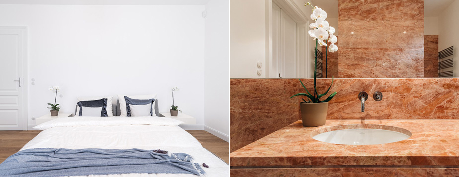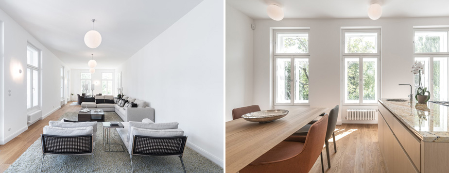 Sollte die rund 192 m² große Wohnung zu klein sein, besteht die Möglichkeit, diese mit der darüber liegenden Wohnung über ein internes Stiegenhaus zu verbinden. Dadurch entsteht ein ca. 384 m² großes „Haus im Haus“ mit 5 Schlafzimmern.