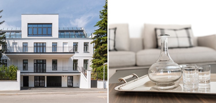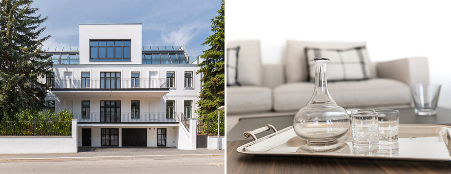 Das architektonische Kunstwerk wurde selbstverständlich mit ausgewählten Materialien errichtet, die mit äußerster Sorgfalt verarbeitet wurden. Die zeitlose, helle Architektur und die durchdachten Grundrisse bestechen vor allem durch eine großzügige Raumhöhe von bis zu 3,45 m. Selbstverständlich wurde auf das Thema Sicherheit besonders bedacht genommen – Alarmanlage für die Außenanlage sowie der Innenräume, Sicherheitseingang (Post- & Müllmänner kommen jeweils nur in einen Vorbereich).