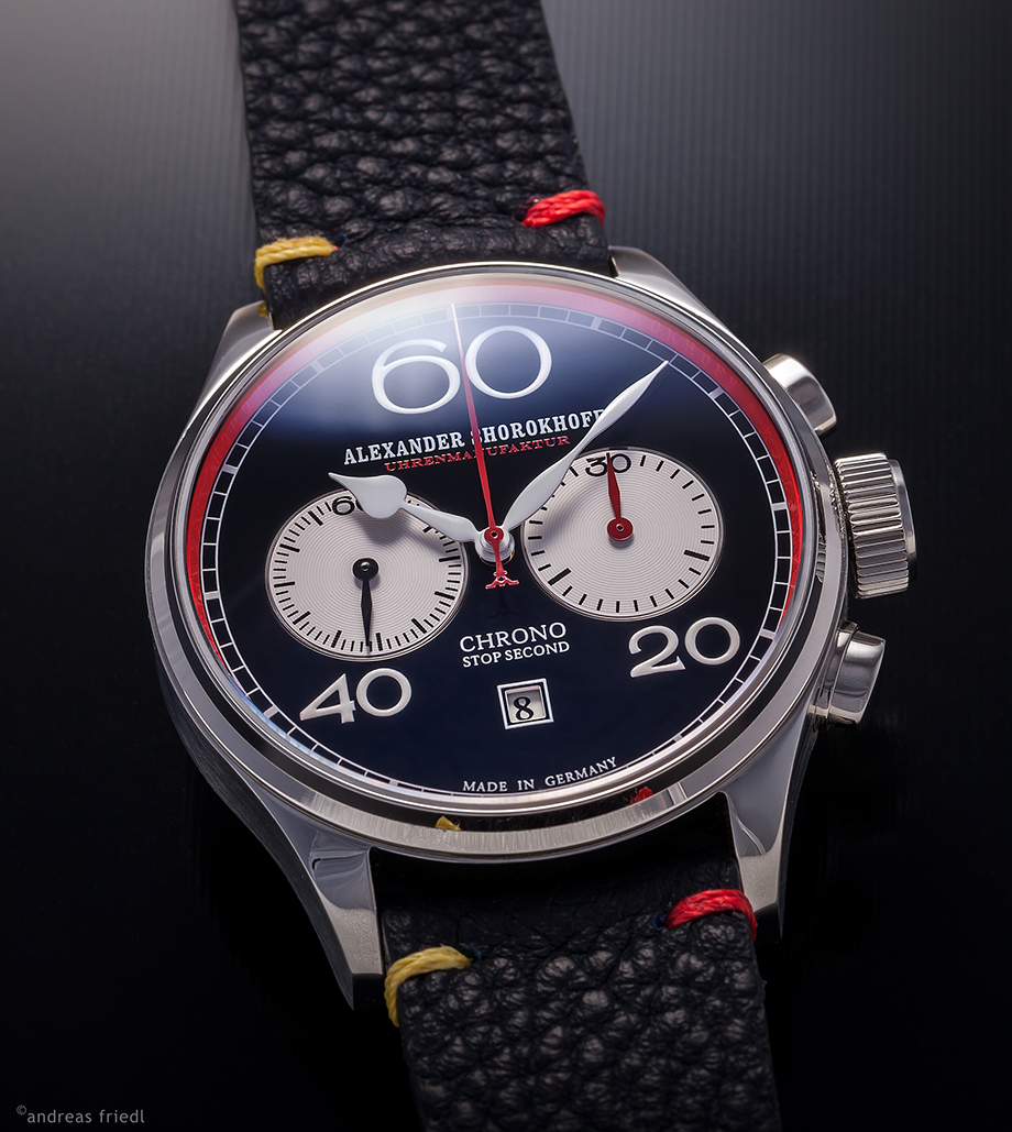Alexander Shorokhoff ist in der Uhrenbranche für seine ungewöhnlichen, avantgardistischen und farbigen Kreationen bekannt. Modelle wie die „Miss Avant-garde“, „Babylonian“ oder „Barbara“ wurden nicht nur für den German Design Award nominiert, sondern auch schon mit einem „Special Price“ ausgezeichnet. Auf der Baseler Messe 2016 möchte „Asum“ nun in eine neue Richtung gehen und unter seinem Dachkonzept „Art on the Wrist“ eine neue Dimension im Uhrendesign aufzeigen. „Red“ heißt sein neues ausgeklügeltes Konzept. Das unterstreicht Shorokhov mit seiner neuen Kollektion und baut das Modell mit zwei Werken: einmal mit dem robusten, zuverlässigen Chronographenwerk 3133 von Poljot mit Handaufzug; andererseits mit dem Chrono-Automatikwerk Kal. 2030 von Dubois Depraz.