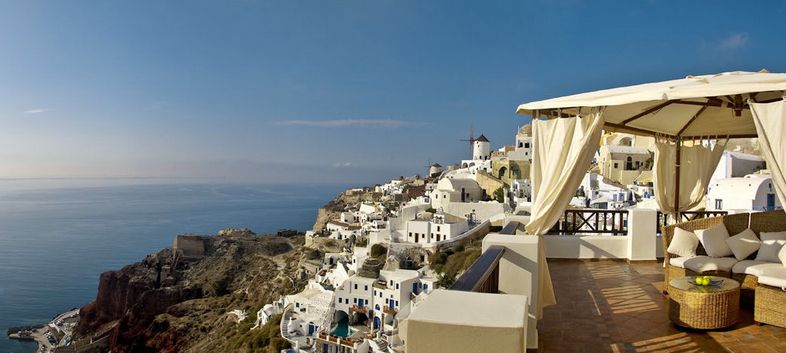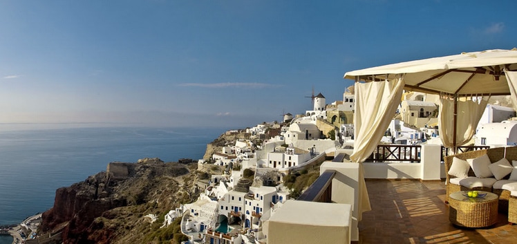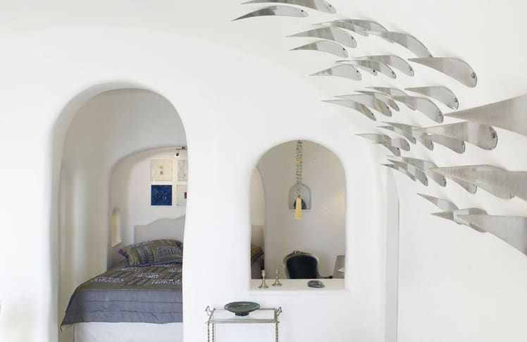 Im weißen Kleid auf der weißen Insel: Santorin zieht nicht nur wegen ihrer 300 Meter hohen Kraterwände, den schwarzen Lavastränden und weiß gekalkten Häusern sowie den romantischen Sonnenuntergängen viele Hochzeitspaare an. Stilvoll wohnen diese in den acht Zimmern des Art Maisons Luxury Santorini Hotels Aspaki & Oia Castle.