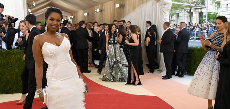 Sängerin und Schauspielerin Jennifer Hudson trug ein Bustierkleid aus weißer Seide mit handgearbeiteten Verzierungen und Pailletten. Vollendet wird das Kleid von einer glanzvollen 120 Zentimeter langen Schleppe. “Es war eine wunderbare Erfahrung mit H&M zusammenzuarbeiten um dieses einmalige Kleid zu kreieren. Besonders die Schleppe war atemberaubend und gab mir ein besonders glamouröses Gefühl“, sagt Sängerin und Schauspielerin Jennifer Hudson.