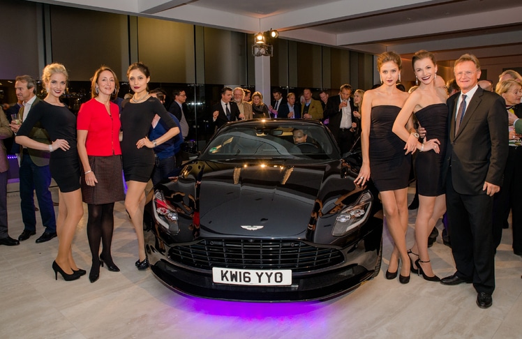 Unter dem Motto "Der neue Aston Martin DB11 ist mehr, als nur ein Auto. Der DB11 ist ein Lebensgefühl!", feierten rund 400 Gäste die Österreich-Premiere des DB11. Im exklusiven Schauraum von Aston Martin Wien fanden sich unter anderen auch die Moderatorin Arabella Kiesbauer, Autor Andreas Salcher, Juwelier Hermann Gmeiner-Wagner und Peter Spak, Geschäftsführer der Pastetenmanufaktur HINK , ein.