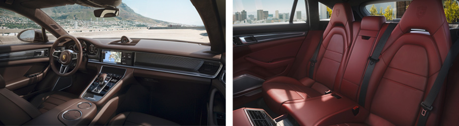 Als erster Panamera ist der neue Sport Turismo mit einer dreisitzigen Rückbank ausgestattet. Da die zwei äußeren Plätze als Einzelsitze ausgelegt sind, ergibt sich hinten eine 2+1-Konfiguration. Die höhere Dachlinie des Sport Turismo erleichtert hinten das Ein- und Aussteigen und gewährt dort deutlich mehr Kopffreiheit.