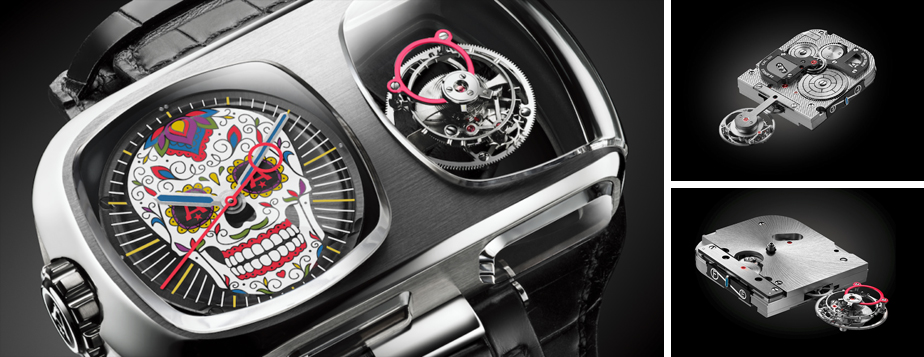 Ein in bunten Farben dekorierter Totenschädel – spanisch calavera – dominiert das Zifferblatt der U10 Tourbillon Calavera. Als Symbol erinnert er an das berühmte Totenfest „Día de los Muertos“. Dieses, jährlich in Mexiko gefeierte Totenfest ehrt zugleich die Toten und erinnert die Lebenden an ihre eigene Vergänglichkeit.