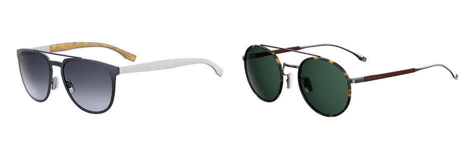 BOSS 0882/S Ein besonderes Feature der neuen, leichten Sonnenbrillen ist der Korkeinsatz im Inneren der Aluminiumbügel. Die außergewöhnliche Materialkombination aus Kork, Aluminium und Metall-/Azetatfront erhöht den Tragekomfort und verleiht den Modellen einen modernen Look. Eine elegante Doppelbrücke unterstreicht die Individualität. Kalte, matte Farbtöne stehen im Kontrast zu dem hellen, natürlichen Korkeinsatz: Schwarz/seidenmatt Schwarz mit braun-grauen Gläsern, Braun/seidenmattes dunkles Ruthenium mit grau-grünen Gläsern, Blau/seidenmattes Palladium mit schattierten grauen Gläsern und dunkles Ruthenium/seidenmattes dunkles Ruthenium mit braun-grauen Gläsern.