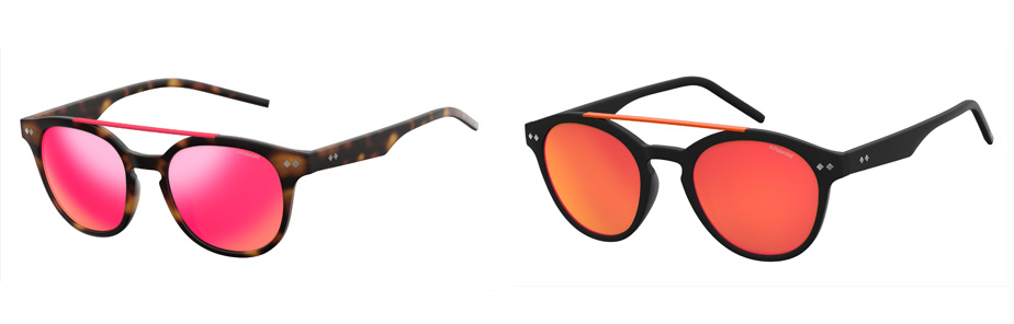 POLAROID 1023/S, PLD 6030/S und PLD 6031/S Unisex-Modelle mit schmalen Profilen und ultraleichten Formen aus mattem Polycarbonat und Metallnieten auf der Fassung, inspiriert von Polaroids ikonischem „Pixel“. Die eckigen oder runden Silhouetten weisen eine verspielte Brücke in Schlüsselloch-Form oder eine dünne, flache Doppelbrücke in der Farbe der Gläser auf: Blau, Grün, Fuchsia, Orange, Rosa, Grau, Schwarz und Braun.