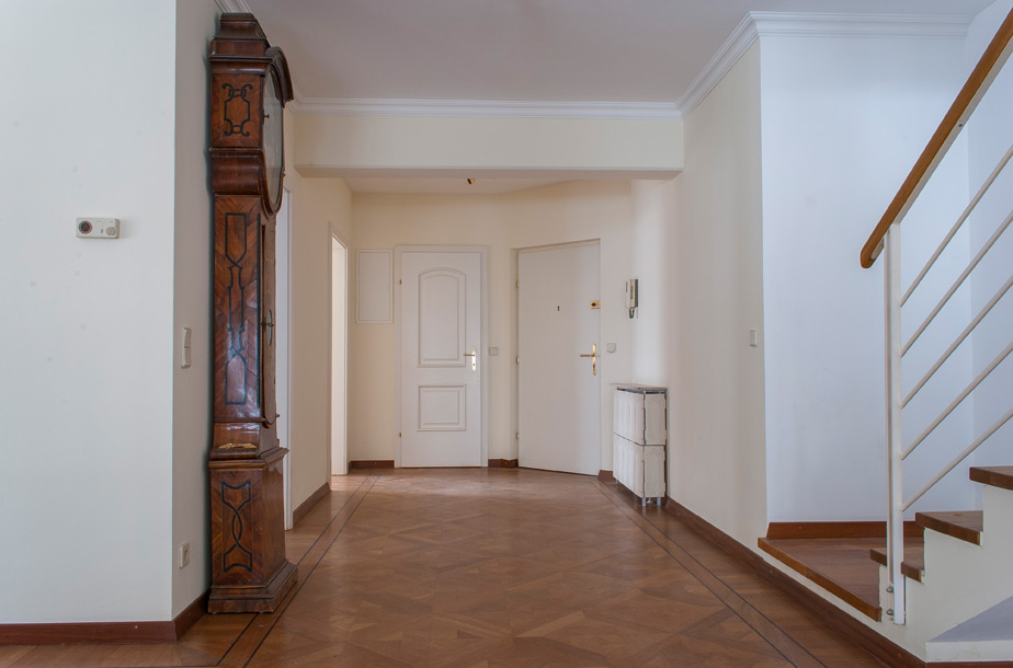 Ein hochwertiger Stern-Parkett im Wohnraum und Fischgrätparkett in den Zimmern verleihen der Wohnung besonderen Charme.