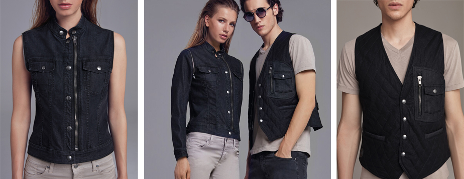 Stil und Design treffen auf Technik – zum Einsatz kommen laminierte und wasserdichte Stoffe mit teilweise oder vollständig wärmegeschweißten Nähten. Das Field Jacket mit Taillengürtel und die Denimjacke mit Zip an den Ärmeln gibt es für Damen und Herren, die männliche Ausführung ist zusätzlich durch eine Weste bereichert.