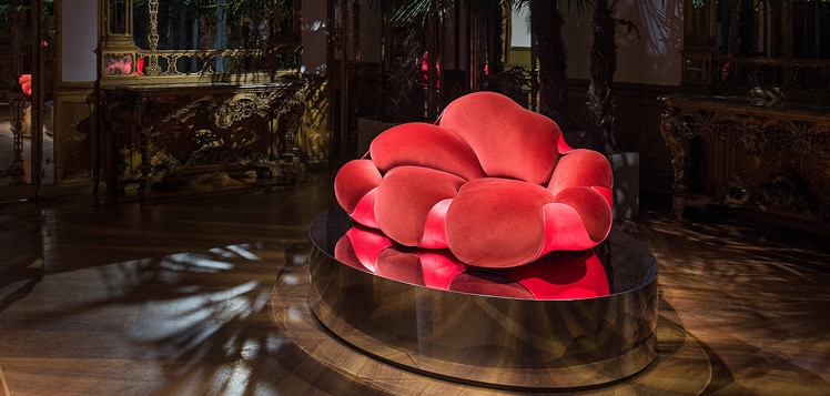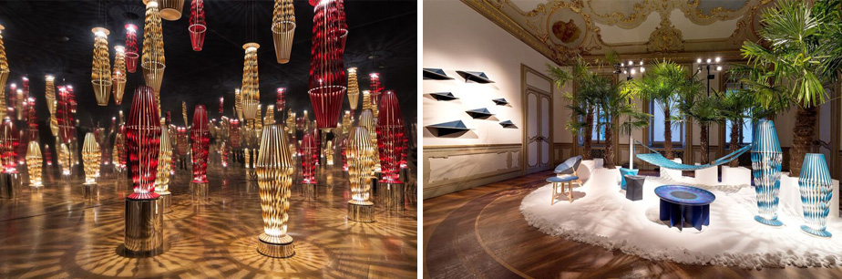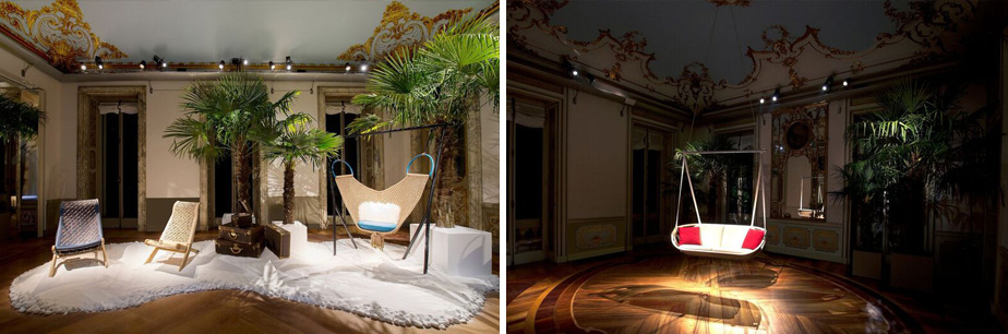 Unter den Designermöbeln befinden sich Stücke wie beispielsweise eine Hängematte, Wohnzimmermöbel aus kostbarem Nomade Leder, ein zusammenklappbares Bett oder ein hängendes Maracatu-Reisekabinett. Die Künstler nahmen auf ihren Reisen um die Welt Anleihen aus den verschiedensten Kulturen. Tokujin Yoshioka wählte etwa einen Blossom Stuhl, Marcel Wanders einen Schaukelstuhl als Vorbild. Die Wolken am Himmel dienten den Campana Brüdern als Inspiration für ihr Sofa, ein Talisman Beistelltisch gab India Mahdavials den entscheidenden Impuls.