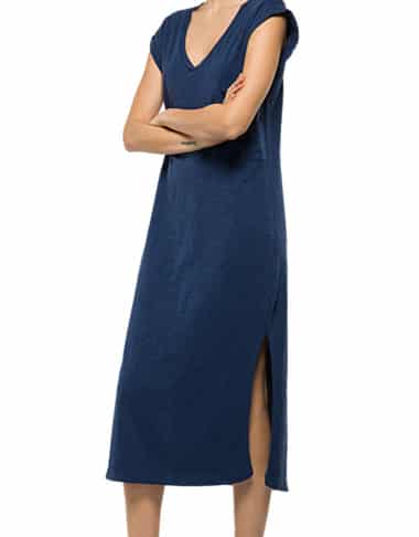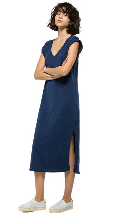 Das lange Kleid aus stückgefärbtem reinem Slub-Baumwolljersey bezaubert mit V-Ausschnitt und Flügelärmeln mit Umschlag. Die Jeans Donna: Skinny fit aus Power Stretch Modal Denim, hüfthoch in angesagter knöchellänge mit Reißverschluss. Die weiche, edle und innovative Denim-Touch ist perfekt mit ihrer ästhetischen wie auch funktionellen Eigenschaft, um sich darin sexy, feminin und bequem zugleich zu fühlen. (et)