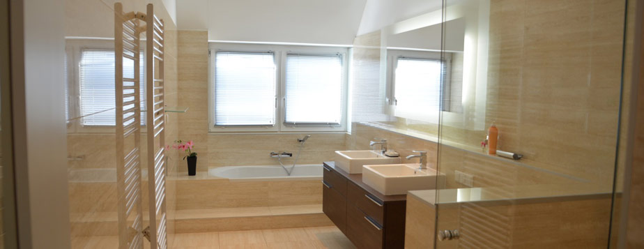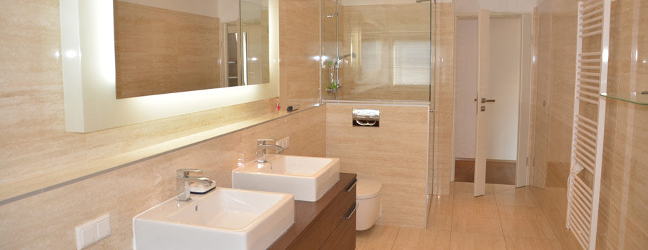 Badezimmer erste Ebene: Ausstattung Stein, Dusche, Wanne, WC