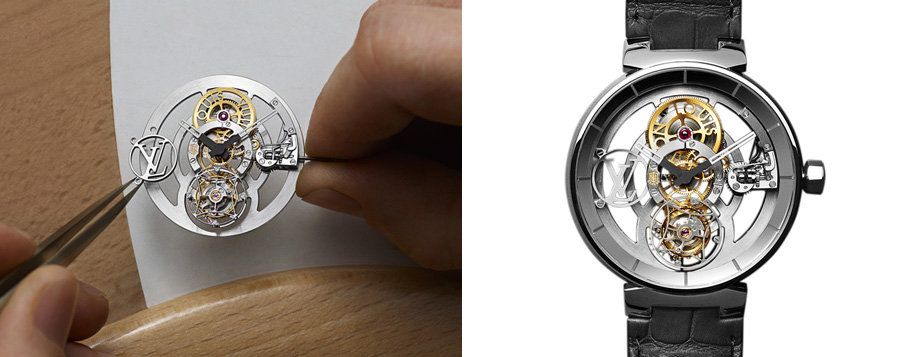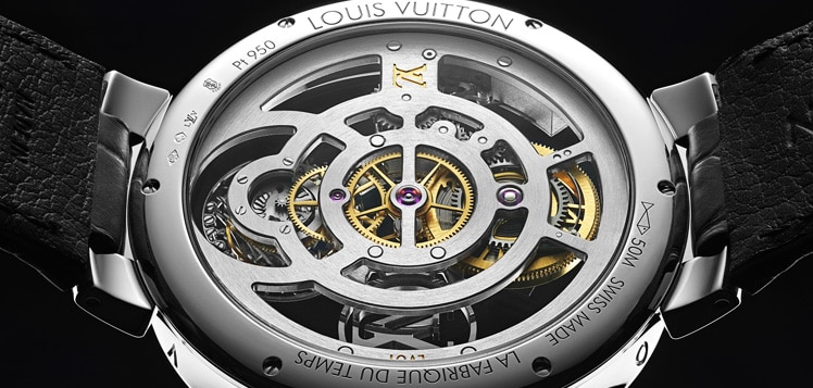 Als Highlight der Kollektion präsentiert Louis Vuitton den „Tambour Moon Flying Tourbillon – Poinçon de Genève“, gefertigt in der Louis Vuitton Uhren-Manufaktur „La Fabrique du Temps“. Das neue Modell ähnelt noch immer seinem ursprünglichen Namensgeber, der Trommel und das obwohl „Tambour Moon“ breiter und schlanker designt wurde und eine ungewöhnliche konkave Gehäuseseite anstelle der nach oben geneigten Flanken des Originals hat. In einem 42,5 Millimeter Platingehäuse arbeitet ein LV97 Kaliber mit Handaufzug und 80 Stunden Gangreserve. Das Tourbillon-Gehäuse bei sechs Uhr hat die Form einer skelettierten Monogrammblume, komplettiert wird das elegante Design durch ein schwarzes Alligatorenband. Als Beleg für die hohe Qualität der Louis Vuitton-Uhren trägt die luxuriöse Uhr das renommierte Siegel „Poinçon de Genève“.
