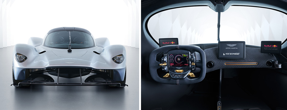 Die Konstrukteure wählten Carbon für das Chassis und zwei große Venturi-Tunnel sind dazu bestimmt, das Fahrzeug an die Straße zu saugen und die Luft unter dem „Valkyrie“ hindurch zu einem gigantischen Heckdiffusor zu führen. Dank dieser aerodynamischen Maßnahmen und dem Splitter an der Front kommt der Aston Martin gänzlich ohne unästhetische Flügelchen oder anderes Leitwerk aus. Angestrebt wird ein Leistungsgewicht von einem PS pro Kilo bei einem Gesamtgewicht des Wagens von etwa einer Tonne – macht also rund 1000 PS.