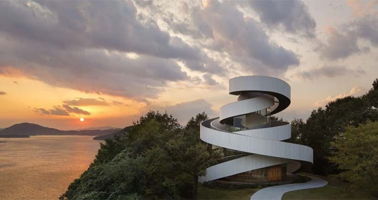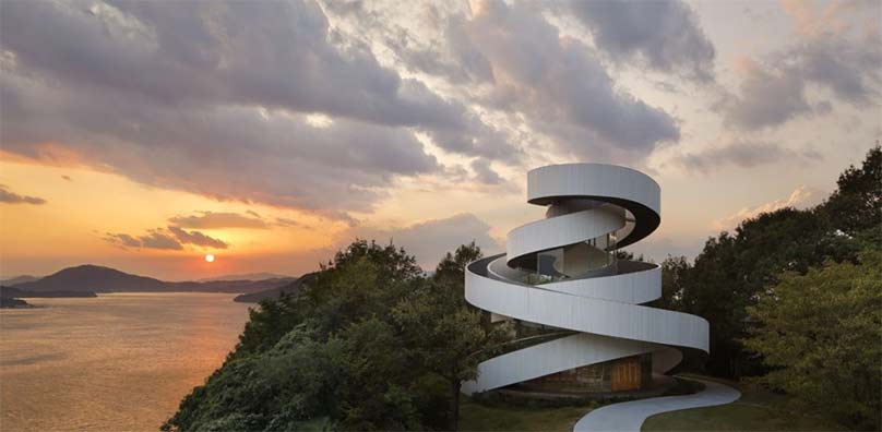 Hoch erhoben, mit atemberaubender Aussicht auf den Ozean, steht eine der außergewöhnlichsten Hochzeitskapellen der Welt. Auf zwei ineinander verwobenen Treppen machen sich Braut und Bräutigam auf den Weg in Richtung Traualtar. Für die Hochzeitsnacht: Das Bella vista Sakaigahama in Onomichi.