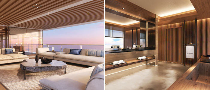 Durch das intelligente Layout, das perfekte Zusammenspiel zwischen dem luxuriösen Interieur und den klaren, offenen Sichtlinien im Außenbereich schufen die Architekten Wohlfühlbereiche für höchste Ansprüche. Dank dem modernen, minimalistischen Design, überdimensionalen Fenstern, Glasfassaden und Glastüren, großzügig angelegten Lounges und attraktiven Public-Places finden die Passagiere eine ästhetische Balance zwischen Öffentlichkeit und Privatsphäre an Bord vor.