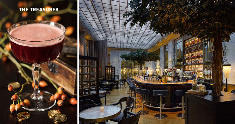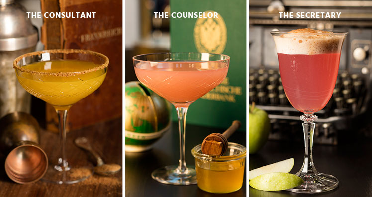 Ein ausgewogener, eleganter, stilvoller Cocktail, aus einer Kombination von Wermut, Blutorangensaft, Ingwer, Kräuterlikör und Champagner. „The Treasurer“, „The Consultent“, „The Branch Manager“, „The Bookkeeper“ und „The Counselor“ ergänzen den fulminaten Geschmacksreigen. (et)
