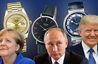 Zeit und Macht am Handgelenk von Donald Trump, Wladimir Putin, Emmanuel Macron und Co.