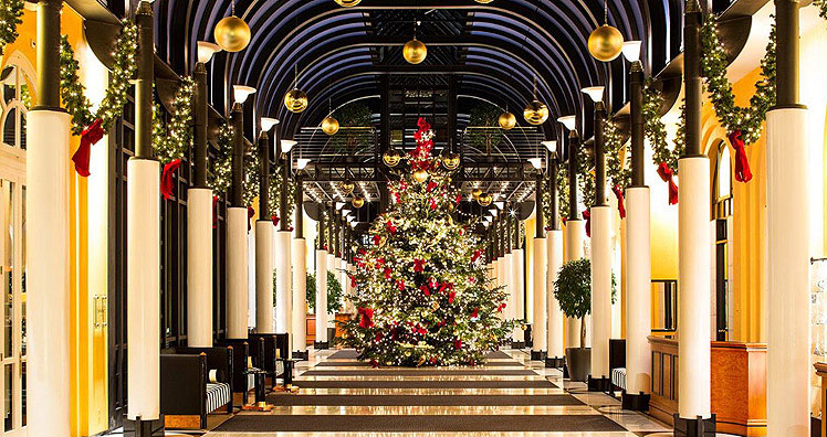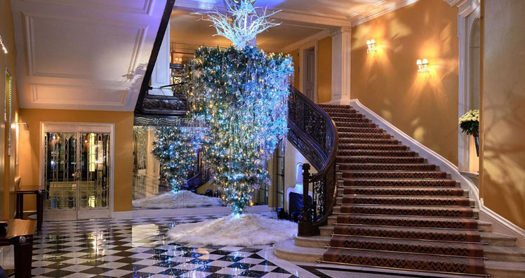 Das berühmte Luxushotel „The Ritz“ in London setzt auf viele kleine, ausladend geschmückte Tannen, mit weißen Schleifen, goldenen Kugeln, roten Christsternen, Girlanden und Gestecken im Eingangsbereich. Dort steht auch der höchste Weihnachtsbaum des Hotels, auf den die Gäste von den oberen Stockwerken hinabblicken. In allen Suiten stehen noch dazu kleine, festlich-geschmückte Christbäume.