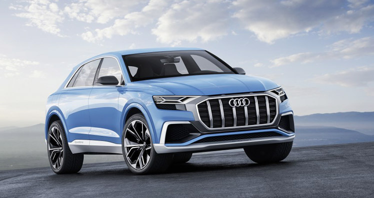 Mit dem „Q8“ in Coupé-Form erweitert Audi 2018 sein SUV-Programm. Neben neuen Materialien im Innenraum setzt Audi vor allem auf neueste Technologien bei den Assistenz- und Infotainment-Systemen. Der Biturbo-V8 mit vier Liter Hubraum, 650 PS und 850 Newtonmeter Drehmoment kommt ebenso wie die Plattform auch beim Lamborghini Urus, der ebenfalls 2018 seine Premiere feiert, zum Einsatz.