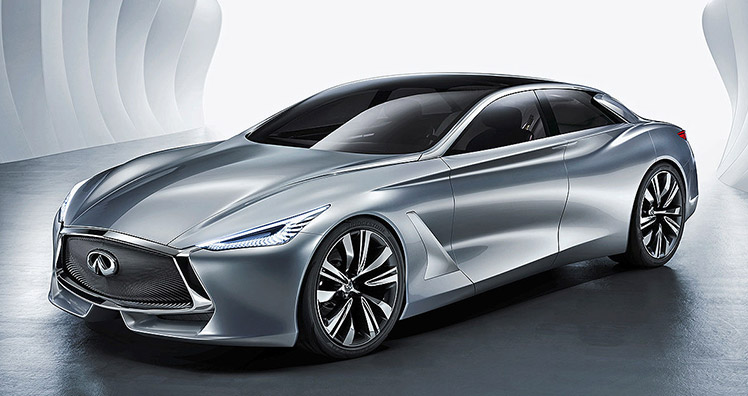 Mit der Studie „Q80 Inspiration“ weist Infiniti, die Edelmarke von Nissan, den Weg für ein Oberklassen-Modell. Der Q80 Inspiration ist gleichzeitig Symbol für die Expansionspläne der Japaner und schwingt sich zum Maßstab der Marke für die kommenden Jahre auf. Die viertürige Limousine fällt unter anderem durch eine coupéhafte Silhouette, eine kurze Motorhaube und fließende Übergänge ins Auge. Trotz einer muskulösen Optik soll sich das vermutlich rein elektrisch angetriebene Konzept durch einen großzügigen Innenraum auszeichnen. Ein Hybrid-Elektro-Antrieb mit 558 PS Systemleistung und 750 Nm bringt den Q80 in unter vier Sekunden auf Tempo 100. Im Motorraum geht ein V6-Twinturbo-Benzindirekteinspritzer mit 456 PS zu Werk, dessen Kraft wie auch die des Elektromotors über eine Neunstufenautomatik bei Bedarf an alle vier 22-Zoll-Räder verteilt wird.
