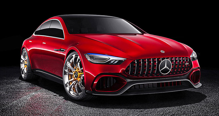 Zusammen mit dem CLS feiert 2018 der intern GT4 genannte AMG, den die Stuttgarter bereits als Studie „GT Concept“ präsentiert haben, seine Premiere. Mit dem Mercedes AMG GT Concept liefert Mercedes einen doppelten Ausblick auf die Modellzukunft. Erstens kündigt die Nobelmarke den Ausbau der GT-Familie an, demnach soll der Viertürer zusätzlich zum GT und Roadster kommen und zweitens soll das Concept-Car zeigen, dass sich Mercedes-AMG mit alternativen Antrieben beschäftigt. Im GT-Concept wird einV8-Benziner mit einem E-Motor kombiniert. Laut AMG soll dieser Hybridantrieb bis zu 815 PS mobilisieren. Dank Allradantrieb 4Matic+ könnten 100 km/h in weniger als drei Sekunden erreicht werden. Auch optisch ist das Showcar ein echter AMG GT. Der Frontspoiler im A-Wing-Design, die Powerdomes und der Panamericana-Grill sind unverwechselbare AMG-Designmerkmale.