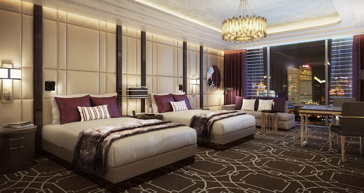 Das „Bellagio Shanghai“, im Dezember 2017 eröffnet, ist ein Schwesterhotel der berühmten Bellagio Towers in Las Vegas. Mit seiner Lage am Ufer des Flusses Suzhou neben der Waibaidu-Brücke und mit einem unvergleichlichen Blick auf den Bund und den Distrikt Lujiazui ist es so konzipiert, dass es selbst anspruchsvollste Gäste beeindruckt. Die Zimmer sind außergewöhnlich geräumig, und einige bieten ausgedehnte abgeschlossene Terrassen. Das am Art-déco-Stil orientierte Interieur des Hotels reflektiert seine elegante Umgebung. In den großartigen Restaurants decken Meisterköche wie Julian Serrano aus Las Vegas ein weites Spektrum an Geschmacksnuancen ab. Beeindruckend ist auch der säulenfreie große Ballsaal mit Tageslicht und einer sieben Meter hohen Decke.