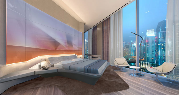 Mitten im Zentrum von Dubai, nahe dem Burj Khalifa, entsteht das 95 Meter hohe Opus-Hotelprojekt „ME Dubai“, mit dem die spanische Hotelkette Meliá Ende 2018 das erste Haus ihrer Luxus-Lifestyle-Marke ME im Mittleren Osten eröffnen wird. Entworfen wurde das spektakuläre Bauwerk der Omniyat Immobiliengruppe von der britischen Star-Architektin Zaha Hadid. Insgesamt 93 Zimmer und Suiten, eine ultraluxuriöse Suite ME sowie 98 avantgardistische Designerwohnungen als Serviced Appartments verteilen sich auf die 19 Etagen und tragen ebenso die unverkennbare Handschrift von Zaha Hadid wie die Lobby, die Lounges und das „Vertical Café“.