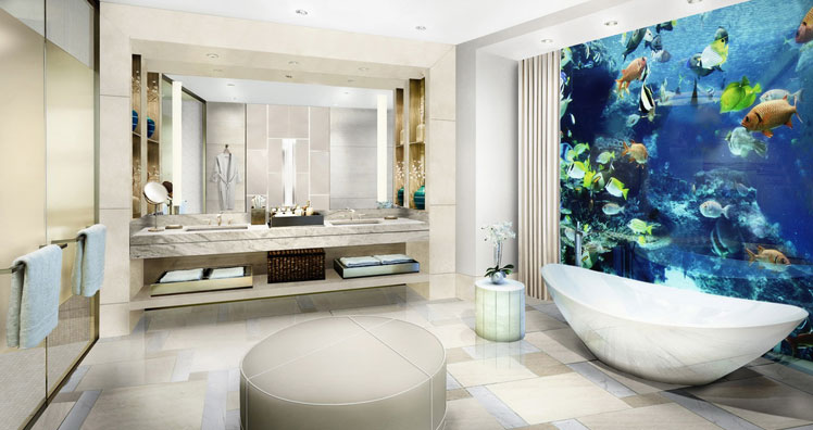 Das sagenumwobene Atlantis galt beim Bau des Luxushotels „Atlantis Sanya“ auf der chinesischen Tropeninsel Hainan als große Inspiration. Die Gäste sollen fühlen, wie es sich unter Wasser lebt und den Eindruck haben, in einem riesigen Aquarium zu wohnen. Deshalb steht das 1,6-Milliarden-Dollar-Projekt tatsächlich teilweise unter dem Wasserspiegel. Aus den bodentiefen Fenstern, der „Neptune Underwater Suite“ bzw. der „Poseidon Underwater Suite“ blicken zum Beispiel die Gäste direkt in die Unterwasserwelt der Ambassabor Lagoon. Atlantis Sanya ist ein riesengroßer Wasserpark mit weiten Stränden, zahlreichen Restaurants, grandiosen Wellnesskonzepten und exotischen Ausstellungen. Die Eröffnung ist für Mai 2018 geplant.