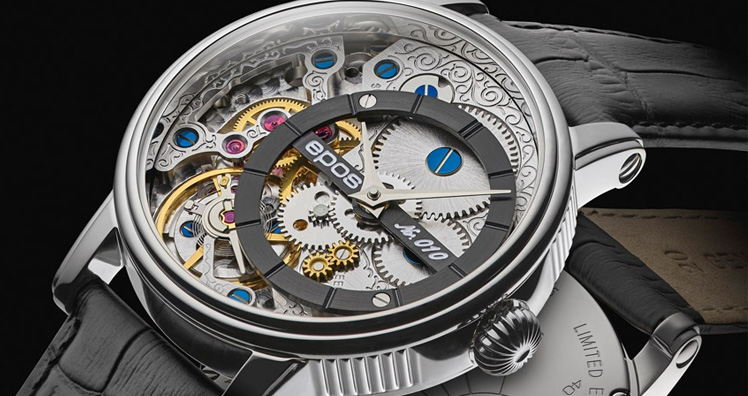 Bei der Kreation Epos 3435 Verso wählten die Uhrmacher der Schweizer Manufaktur das historisch renommierte Handaufzug-Kaliber ETA 6497. Sie modifizierten es, um das komplexe mechanische Uhrwerk zifferblattseitig sichtbar zu machen. Mit dem hypnotisierenden Ticken seiner großen goldenen Unruh auf der unteren linken Seite des Zifferblatts und den unermüdlich kreisenden Rädern darüber, bietet der skelettierte Zeitmesser ein großartiges Schauspiel. Die Basis für diese clevere Modifikation ist das zuverlässige ETA 6497-Kaliber mit Handaufzug in einem 42,5-Millimeter-Edelstahlgehäuse. Ein dezentrales kleines Zifferblatt im Sonnenschliff mit gravierten Indexen und der Pulsometer, eine interessante und äußerst seltene Zusatzfunktion, auf der Gehäuserückseite, ergänzt die perfekte Ästhetik der Uhr.