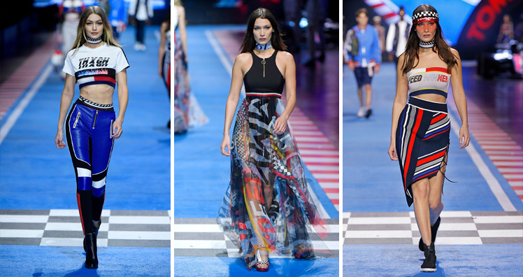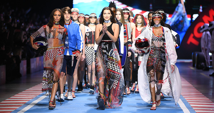 Tommy Hilfiger, selbst leidenschaftlicher Rennsport-Fan, zelebrierte mit der „Motorsport-Runway-Show“ die erfolgreiche Partnerschaft mit dem Motorsport. Flankiert von Männern in Rennanzügen und zwischen Reifenstapeln schritt als erstes Gigi Hadid über den Laufsteg, danach folgten Männer- und Damenmodels über die Rennpiste und zeigten Looks, die meist von den ikonischen Streifen des Modehauses und der unverkennbaren DNS von Hilfiger geprägt waren.