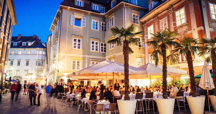 Küchenchef Michael Hebenstreit sorgt weiterhin für die Speisen auf Hauben-Niveau im Szene-Restaurant mit über 150 Sitzplätzen. Als Partner der Genusshauptstadt Graz und der Genussregion arbeitet das Restaurant stark mit regionalen Betrieben und Herstellern zusammen. Daraus ergibt sich eine bei den Gästen sehr geschätzte Verbindung einer internationalen Küche mit steirischen Produkten.