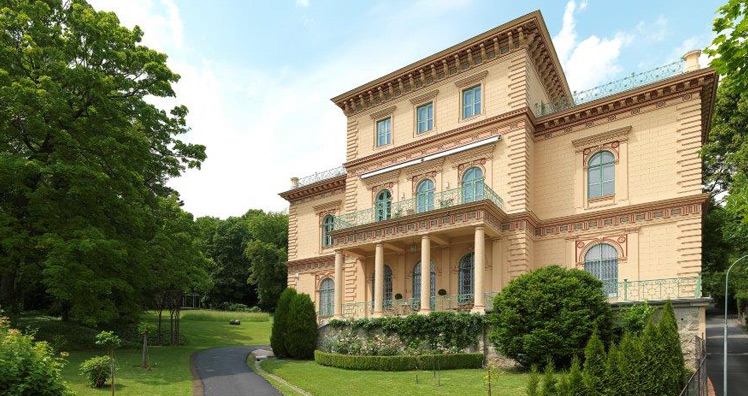 Das denkmalgeschützte Gebäude, es liegt leicht erhöht, auf einem zirka 5.200 Quadratmeter großen Grundstück in vornehmer Distanz zur Straße, wurde in den letzten Jahren behutsam revitalisiert, architektonisch so weit als möglich in den Originalzustand zurückgeführt und technisch auf den letzten Stand gebracht. Die zirka 4,3 Meter hohen repräsentativen Wohnräume sind mit Parkettböden und hohen Kastenfenstern, teilweise noch mit Original-Spaletten, ausgestattet. In der zum Teil noch original erhaltenen Parkanlage befinden sich uralte Bäume, Kieswege, Efeuteppiche, Heckenanlagen, Rosen- und Hortensienbeete und viele botanische Raritäten. Ebenso sind noch einige Kunstobjekte des ehemaligen zeitgenössischen Skulpturengartens der derzeitigen Besitzer vorhanden.