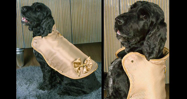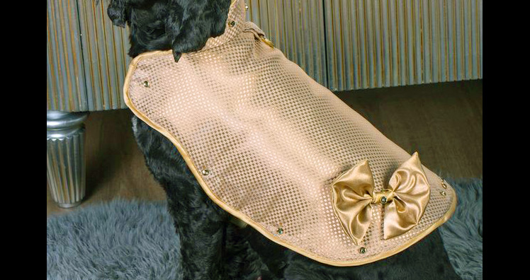 „Doggy Armour“, ein britischer Hersteller von exklusiven, bissfesten Hundemänteln bringt gemeinsam mit dem Online-Portal für Luxusprodukte „VeryFirstTo“ die weltweit erste Hundejacke aus 24 Karat Gold auf den Markt. Superreiche Hundebesitzer, denen das Goldmäntelchen für ihren vierbeinigen Liebling noch nicht genug Luxus ist, können zusätzlich noch 20 schwarze Diamanten oder 20 Swarowski-Kristalle anbringen lassen.