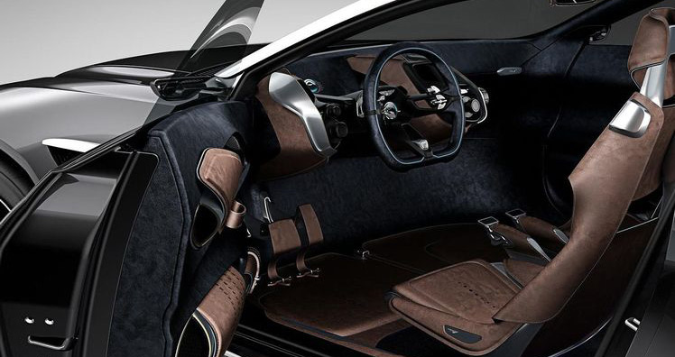 Optisch tritt der Aston Martin mit den klassischen Insignien der Marke auf. Mit einem mächtigen Kühlergrill, zwei extrem schmalen Scheinwerfern, die weit in die Kotflügel hineinragen, einer sportlichen Fahrgastzelle sowie einem durchgehenden Lichtband am Heck. Die Dachlinie läuft nach hinten schmal zu und zeigt sich mit einem langen Panoramadach. Nach vorne öffnende Türen unterstreichen den sportlichen Anspruch.