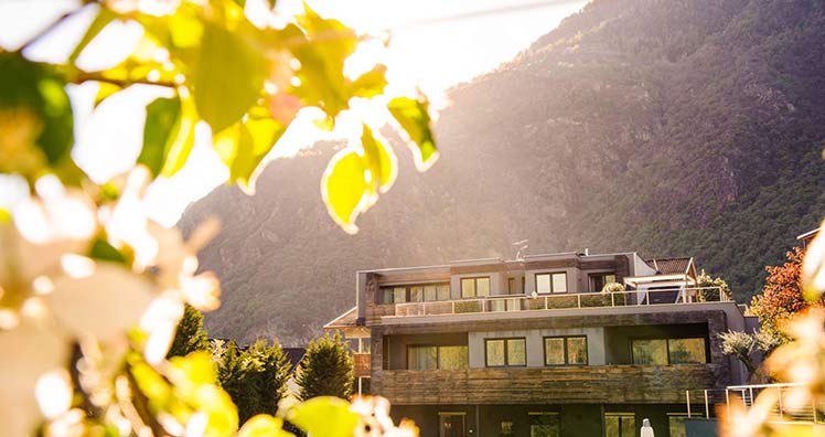Perfekter Ausgangspunkt für alle Abenteuer ist das Design Hotel Tyrol, am Rande des kleinen Ortes Rabland am Eingang des Vinschgau gelegen, gleich in Nähe der Kurstadt Meran. Von außen lässt sich gar nicht erahnen, mit welchem Style-Faktor das lässige Wander- und Bikehotel aufwartet. Für alle Könnerstufen ist beim Aktivitätenreigen etwas dabei, denn rund um das Hotel finden die Gäste viele Wege, den berühmten Meraner Höhenweg, den höchsten Wasserfall Südtirols und die hochalpinen Spronser Seen. Eine besondere Herausforderung bieten die Gipfel der 3.000er rund um Meran. Das Auto bleibt dabei in der Garage, denn sowohl die Wanderwege, als auch die zwei Seilbahnen, die auf 1.500 Höhenmeter auf beiden Talseiten führen, sind zu Fuß erreichbar.