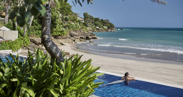 Indonesien in seiner elegantesten Form. Es ist ein magischer Ort, ein Gartenkunstwerk mit exotischen, in vielen Farben leuchtenden Blüten, der die Gäste in den Bann zieht. In den dazwischen liegenden Luxus-Bungalows sollen sogar schon Königsfamilien residiert haben. Die einzigartige Architektur der Bungalows, dichte Flora und Fauna als Sichtschutz gewähren absolute Privatsphäre.