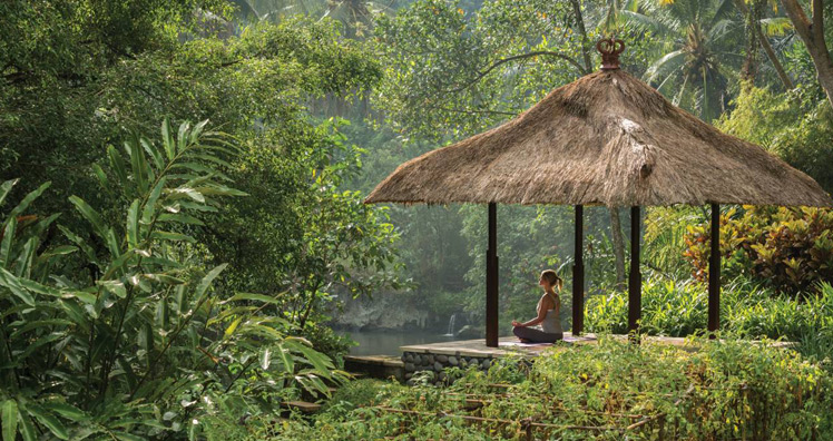 Das architektonisch behutsam gestaltete Resort erstreckt sich auf einem weitläufigen Areal im zentralen Hochland, nahe dem Dorf Sayan. Versteckt, aber dennoch nur sieben Kilometer von den gehobenen Shops in Ubud bzw. neun Kilometer von den antiken Schnitzereien in der Höhle Goa Gajah entfernt. Romantische Abende auf den Terrassen der eleganten Villen und Suiten sind auch hier garantiert. Traumhaft, ein Dinner bei Kerzenschein mit anschließendem Spaziergang durch die tropischen Gärten.